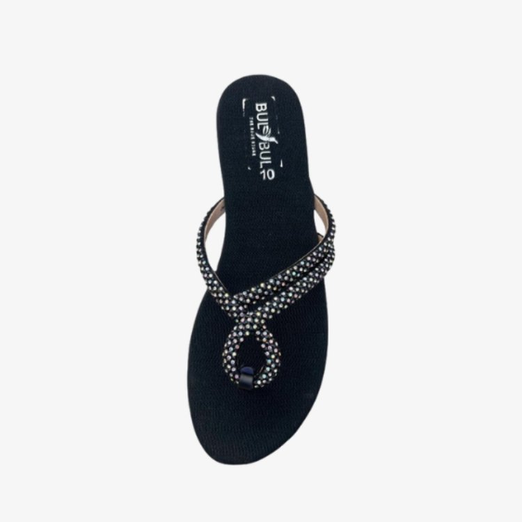 Turn heads wherever you go with the BuBuLa Glam Step – Black Crystal Slip-On Flat Slippers. Designed for comfort and style, these chic sandals boast a rich maroon footbed and a sparkling rhinestone-encrusted strap in an elegant loop design. The non-slip sole ensures confident steps, while the cushioned insole keeps your feet at ease from day to night.