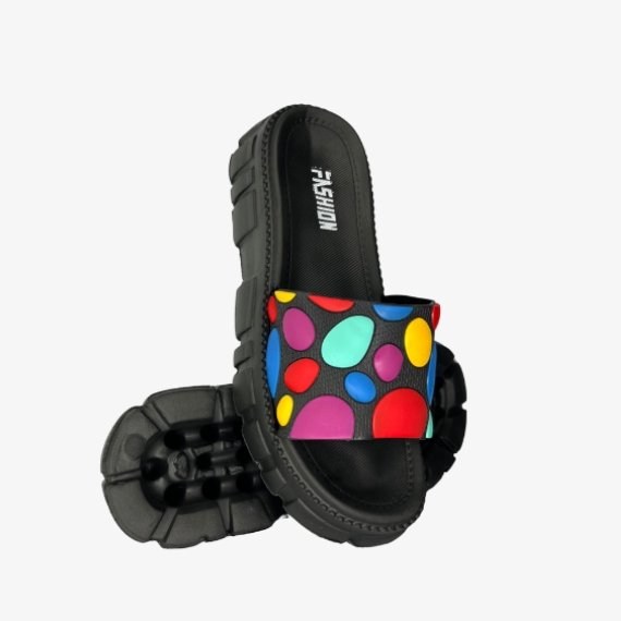 Step into comfort and style with these trendy chunky black slide slippers featuring a vibrant, multicolored pebble design on the strap. The thick, cushioned sole provides excellent support, making them perfect for everyday wear. Whether you’re lounging at home or heading out, these stylish slides add a fun and playful touch to any outfit.